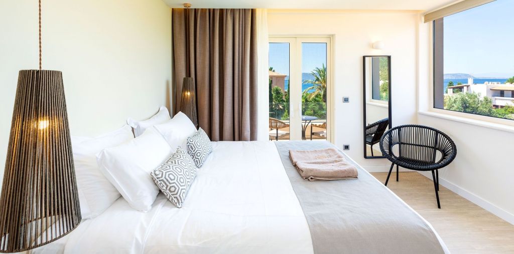 Το Deluxe Δίκλινο Δωμάτιο με θέα στη θάλασσα σας προσκαλεί στους φωτεινούς και καλαίσθητα διακοσμημένους χώρους του, προσφέροντάς σας ένα king size κρεβάτι, με υποαλλεργικό, ανατομικό στρώμα και ανώστρωμα, ένα άνετο και μοντέρνο μπάνιο με σύστημα rain - shower και μεγάλη επιπλωμένη βεράντα, με θέα στην εκπληκτική θάλασσα ή τους καταπράσινους κήπους.