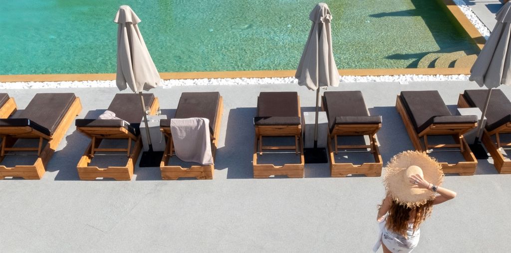 Η σύγχρονη αισθητική συμπληρώνει κομψά τους εσωτερικούς χώρους του ξενοδοχείου, ενώ εξωτερικά η αρχιτεκτονική του “δένει” φυσικά με το περιβάλλον τοπίο. Παντού υπάρχουν γήινες λεπτομέρειες στην διακόσμηση, όπου έχουν χρησιμοποιηθεί τοπικές πρώτες ύλες, όπως πέτρα, στον εξωτερικό διάδρομο, αλλά και χαλαζιακή άμμος, περιμετρικά της μεγάλης πισίνας. Όλα τα δωμάτια παρέχουν σύγχρονες ανέσεις, και μπαλκόνια με θέα στη θάλασσα και το βουνό.