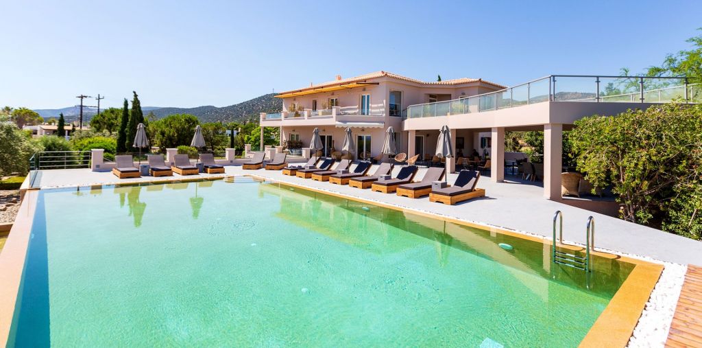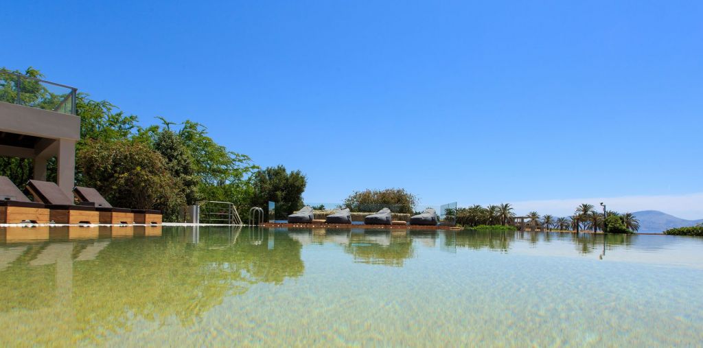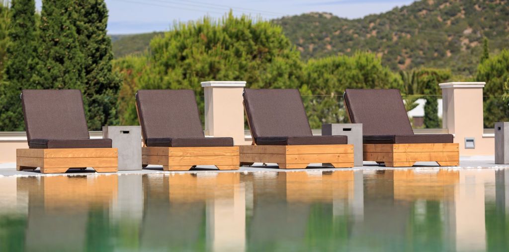 Our large infinity pool with quartz sand and fresh, aquamarine water is ideal for endless relaxing moments overlooking the expanse of the cobalt blue sea, all the way to Hydra island silhouetted against the horizon. Take a refreshing dive in the revitalizing water and when you’ve enjoyed your swim, sit back and relax at a cozy sun-lounger by the pool, sipping your favorite drink or savoring a light snack from the bar.